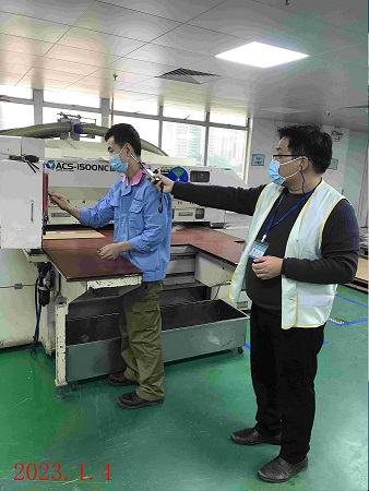 检测人员:童斌、刘伟跃、刘嘉勇、林海捷、周茜、谢丛咏(左一、二、三、六、八、九);其他人员为企业陪同人员 |