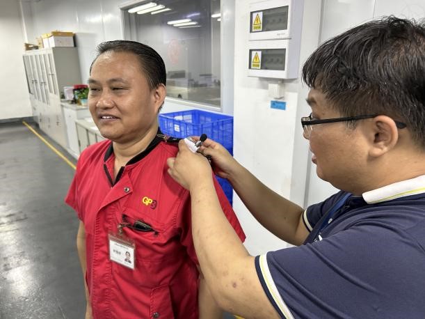 左一、左三分别是采样人员(林海捷、田仲达);右二是企业陪同人(徐南燕) |