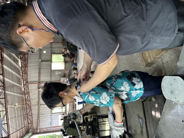 左二、左三分别是采样人员(田仲达、林海捷);左一是企业陪同人(周冰珊) |